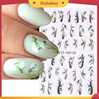 Huluboy Huluboy♡ Stiker Decal Motif Bunga Putih Translucent Bahan Kertas Untuk Manicure Wanita
