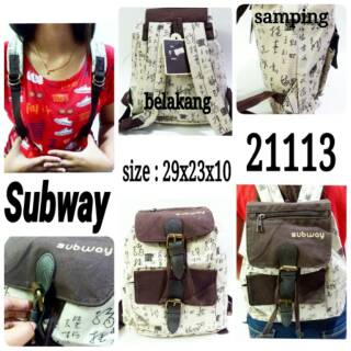 Tas ransel subway 21113 tas ransel wanita minni lucu bahan kanvas