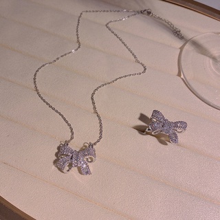 Set Kalung Cincin Bahan Titanium steel Desain Pita Aksen Zirkon Untuk Wanita