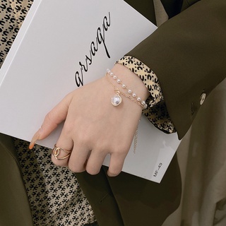 Gelang Rantai Liontin Mutiara Lapis Ganda Bahan Baja Titanium S925 Warna Emas Gaya Vintage Untuk Wanita