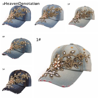 Topi Baseball Adjustable Bahan Denim Aksen Kristal Berlian Imitasi Untuk Pria Dan Wanita
