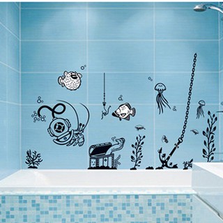 RELIZA WALLSTICKER RUMPUT LAUT IKAN FISH FUGU KAMAR MANDI TOILET WALL STICKER DINDING AY9040