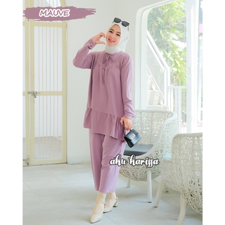 NAURA SET 2IN1 Bahan MOSSCRAPE MIX KATUN (Dapat Baju + Celana) BAJU SETELAN WANITA TERBARU MODEL SIMPLE DAN ELEGAN BAJU SET WANITA HARGA MURAH , BAHAN ADEM , NYAMAN DI PAKAI BAJU SET 2022