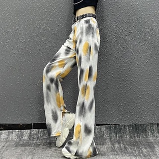 celana jeans pinggang tinggi warna tie-dye gaya barat slit wide leg jeans wanita musim gugur dan mus