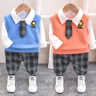SSL53-Setelan Set Anak Laki Laki 3in1 Baju+Vest+Celana College Style