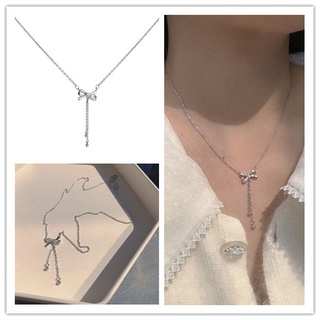 Kalung Rantai Klavikula Hias Liontin Ikatan Simpul Rumbai Kristal Untuk Wanita