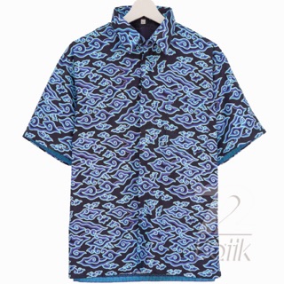 KEMEJA BATIK PRIA Lengan Pendek Premium Motif Mega Mendung Warna Biru Hitam 725437 Cap 72 - Baju Kemeja Atasan Pakaian Setelan Batik Pria Cowok Laki Laki Remaja Keluarga Kantor Lengan Pendek Modern Slimfit Slim Fit Premium Kekinian
