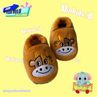 Sepatu Bayi Laki Laki Perempuan 0 12 Bulan Karakter Sapi Cokelat Muda Prewalker