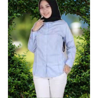 kemeja panjang wanita biru muda/biru telor asin polos tanpa kantong