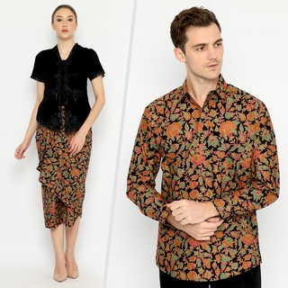 BATIK COUPLE KELUARGA Kemeja Rok Lilit Instan Batik Pria Lengan Panjang Slimfit Premium Hitam Orange 728632 Cap 72 - Baju Kemeja Atasan Pakaian Batik Couple Cople Pria Cowok Laki Laki Remaja Keluarga Lengan Panjang Modern Slimfit Premium Kekinian