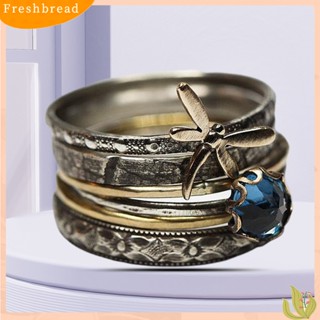 < Freshbread > Cincin Jari Gaya Vintage Multi-layer Anti-Cacat Capung Biru Faux Kristal Engagement Ring Untuk Pacaran