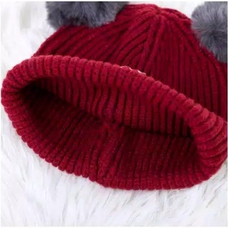 Topi Rajut pom pom bayi rajut bulu anak, Topi kupluk wool hangat bayi