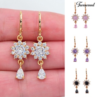 1 Pasang Anting Juntai Bentuk Bunga Aksen Berlian Imitasi Tahan Lama Untuk Harian