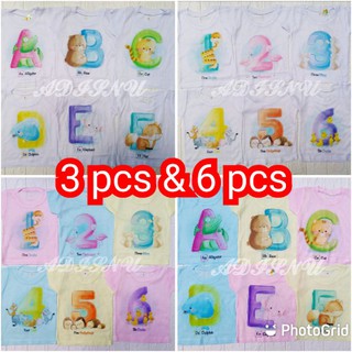 3 Pcs Atau 6 Pcs Kaos OBLONG Bayi Setali Harian Motif Karakter PUTIH Dan WARNA