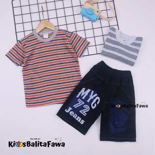 Setelan Salur Jeans uk 5-6 Tahun / Kaos Anak Cowok Celana Jeans Pendek Baju Anak Cowo Murah Pakaian