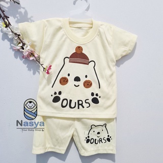 Setelan baju bayi laki laki lengan pendek 3-18 bulan motif beruang