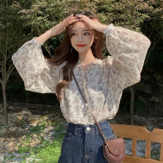 MOOGU ♡ Floral kemeja lengan panjang wanita shirt baju wanita