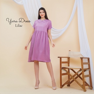Yura Midi Dress Wanita Rayon Premium Baju Wanita Lengan Pendek Pakaian Fashion Kekinian LD 110 cm