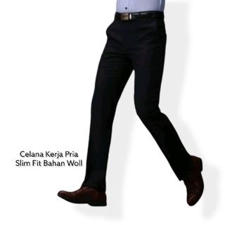 FREE MASKER Celana Kerja Pria Kerja Slimfit Warna Hitam Size Jumbo 27-44 Bahan Kain Woll Premium