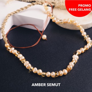 Kalung Amber Baltic Lemon Glossy X Mutiara by Amber Semut
