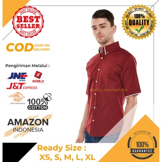 Kemeja Pria Boyi Top Man Corta Maroon Lengan Pendek Kasual Polos Formal Kerja