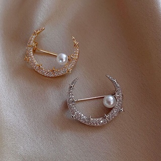 Bros Pin Bentuk Bulan Bintang Aksen Mutiara Untuk Wanita