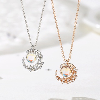 (COD) 2022 Kalung Rantai Pendan Bulan Sabit + Bintang Hias Kristal Putih Untuk Wanita