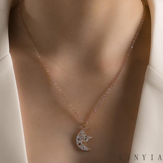 Kalung Rantai Klavikula Hias Liontin Bulan Bintang Model Hollow Bahan Zirkon Untuk Wanita