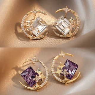 【COD Tangding】Anting Tusuk Bentuk Bulan Bintang Kecil Aksen Kristal Berlian Gaya Korea Untuk Wanita