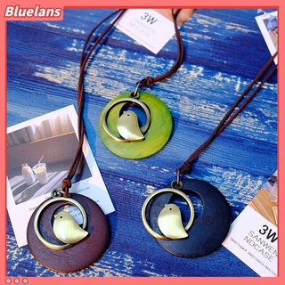 Kalung Liontin Bentuk Lingkaran Hollow Burung Bahan Kayu Gaya Etnik Untuk Wanita