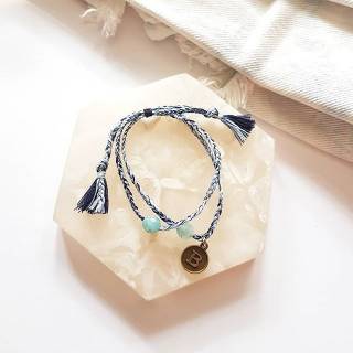 Stone braided double layer L. Blue-Navy (gelang / gelang nama / gelang etnik / gelang inisial)