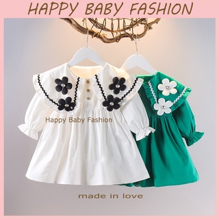 【Happy Baby】0-4Tahun QZ-91 Dress Motif Bungga anak perempuan/Gaun putri lengan panjang Fashion Anak