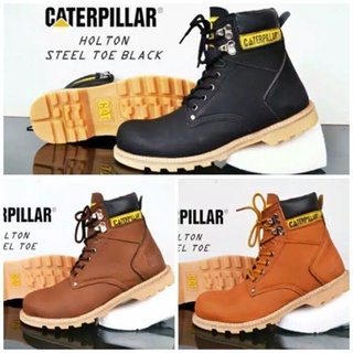 Sepatu Safety Pria CAT Holton Sepatu Safety Boots Ujung Besi Fashion Pria Bikers Turing Outdoor