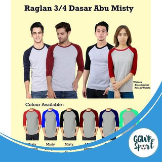 Kaos Raglan Wanita dan Pria Setengah Lengan Kombinasi Abu Misty Katun Combed 24S Kualitas Terbaik