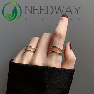 2pcs / Set Cincin Jari Telunjuk Model Gelombang Terbuka Dapat Disesuaikan Gaya Korea Untuk Wanita