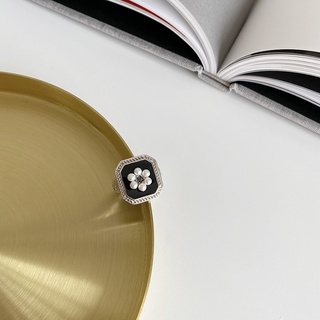 Cincin Model Terbuka Desain Bunga Aksen Mutiara Gaya Korea