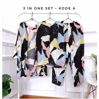 Pajamas 3 in one set / fashion muslim terpopuler/STELAN WANITA/ BAJU TIDUR, SETELAN WANITA