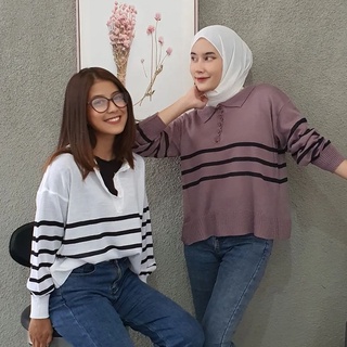 Sweater Trendy Knitted Wanita Florence Collar Bahan Rajut Ala Korean Style