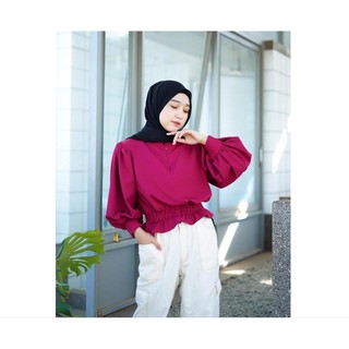 Tq88indonesia Fashion Baju Atasan Wanita Terbaru / Vella Blouse CRINCLE / Blus Casual Polos Lengan Panjang Kekinian / Ootd Kasual