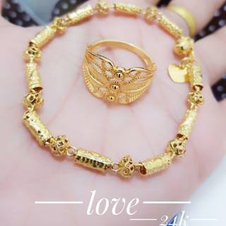 Gelang tangan rantai bambu plus cincin cantik lapisi mas 24 k