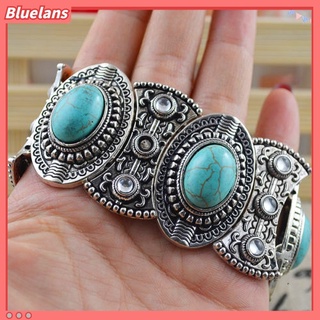 Gelang Bangle Turquoise Ukir Bentuk Oval Gaya Retro Tibet Untuk Wanita