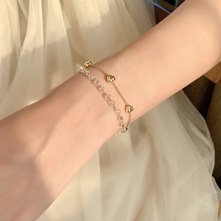 Aksesoris Fashion Wanita Korea Kepribadian Sederhana Gelang Kristal Beaded Double Heart bead bracelet Charm Bangle