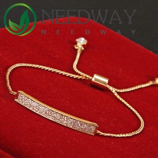 Needway Pave Adjustable Fashion Drawstring Bracelet Slider Jewelry Exquisite Alloy Silver Plated Crystal Bangle/Multicolor