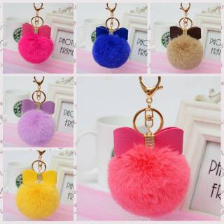 Barang mobil accmobil Gantungan Kunci Bentuk Bola Bulu Untuk Tas Aksesoris pita
