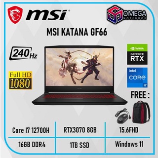 MSI KATANA GF66 I7 12700H 16GB 1TBSSD RTX3070 8GB W11 15.6FHD 240HZ BLIT 1YR BLK -12UG.263