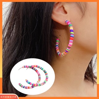 [WONE] 1pasang All-match Wanita Warna Pelangi Polymer Clay Bohemian Hoop Stud Earring Untuk Outdoor