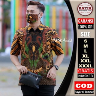 Batik Pria Lengan Pendek Premium Modern Reguler Baju Kemeja Atasan Batik Seragam Pria Laki Laki Cowok Full Furing Koko Kombinasi Lengan Pendek Slim Fit full Puring Kekinian BATIK ALUNA S M L XL XXL XXXL