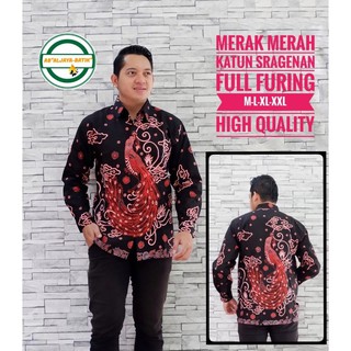 BATIK MERAK MERAH LAPIS FURING KATUN HALUS SRAGENAN SIZE M-XXL HIGH QUALITY