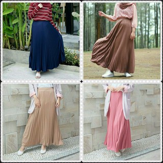 ROK PLISKET POLOS REMPEL MUSLIMAH SKIRT ABG FLARE SKIRT MURAH PRISKET PLEATED SALE MAYUNG