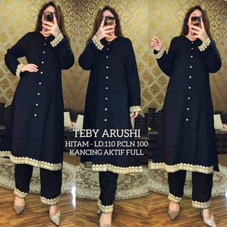 Teby Arushi - One Set Tunik Renda Arab Rayon Viscose Lengan Panjang Setelan Wanita Kekinian Import